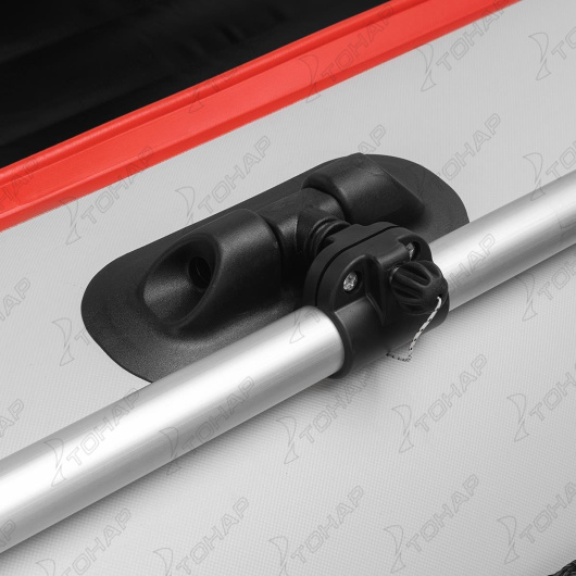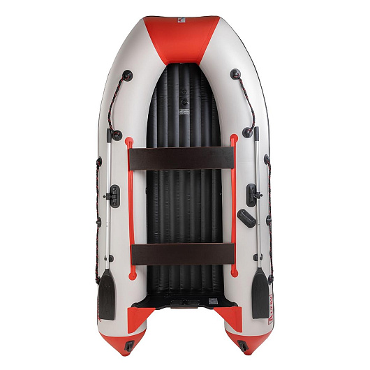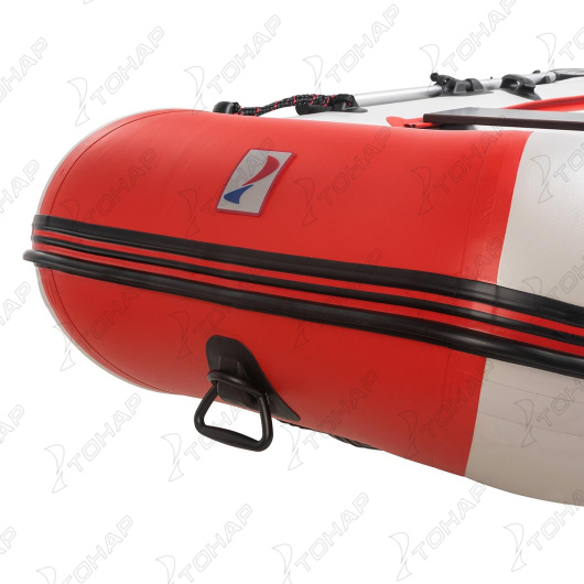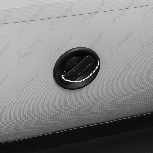 • Увеличенная килеватость обеспечивает исключительную управляемость лодки, делая ее ход более мягким и плавным на волнах, предотвращая прыжки и раскачивание, а также улучшая маневренность и курсовую устойчивость на скорости за счет более уверенного вхождения в повороты. • Надувное дно низкого давления обеспечивает простоту сборки, а также является дополнительным элементом плавучести и повышает безопасность лодки, обеспечивая непотопляемость лодки при пробое бортового баллона. • Конусные баллоны с диаметром от 42 см в носовой части до 48 см в кормовой части и улучшенная геометрия их задней части не только значительно улучшает ходовые свойства и обзорность, необходимые для маневрирования, но и обеспечивает быстрый выход лодки в режим глиссирования за 3-4 секунды. • Армированный ПВХ материал плотностью 900 г/м.кв. обладает отличными характеристиками: повышенная прочность, стойкость к пробоям и проколам, устойчивость к деформации при перепадах температуры, масло- и бензостойкость, сопротивляемость ультрафиолету, соленой воде, истиранию. • Сварка внутренних швов горячим клином выполнена на высокотехнологичном оборудовании, что гарантирует монолитную структуру шва и 100% герметичность. Снаружи по шву лодки приклеена дополнительная лента ПВХ. • Три герметичных отсека лодки гарантируют безопасность пребывания на воде: в случае повреждения одного отсека лодка останется на плаву. • Для увеличения воздухонепроницаемости воздушные клапаны имеют конструкцию с подпружиненной тарелкой. • Широкий кокпит позволяет удобно расположить пассажиров и снаряжение, обеспечивая безопасное и комфортное пространство для нахождения внутри лодки. • Транец и банки изготовлены из влагостойкой многослойной морской березовой фанеры, которая абсолютно не впитывает влагу. • Система крепления банок «Ликтрос-Ликпаз» позволяет настроить расположение сиденья в нужном положении. • Интерцептор, расположенный в нижней части транца лодки, не только стабилизирует отрыв воды от транца, предотвращая брызгообразование за кормой во время глиссирования лодки, но и защищает нижний торец транца от повреждений. В кормовой части лодки на стыке транца и баллонов установлены брызгоотбойные косынки, которые дополнительно защищают кокпит от попутной волны и брызг от работающего мотора. • Сливной клапан, вмонтированный в стационарный транец, позволяет удалять воду во время движения лодки под мотором, что существенно повышает комфортабельность при эксплуатации. • Стравливающие клапаны, расположенные в дне и на баллоне, предназначены для защиты лодки в жаркую погоду. • Корпус лодки имеет дополнительную защиту в виде привального бруса для предотвращения механических повреждений и распределения нагрузки при швартовке. Особая форма реборды позволяет закреплять крючки дополнительного оборудования, носовых и стояночных тентов. • Днище лодки защищено протекторами из ПВХ-профиля по линии киля и в зоне нижней части баллонов для предотвращения негативного воздействия при спуске на воду, а также во время движения, когда лодка может наезжать на камни и песок. • Лодка имеет надежную рым-ручку для переноски лодки, крепления якорного троса или швартового канала. • Прочная леерная обвязка лодки на бортах служит для безопасности пассажиров, предоставляя точк